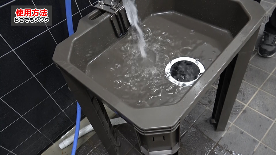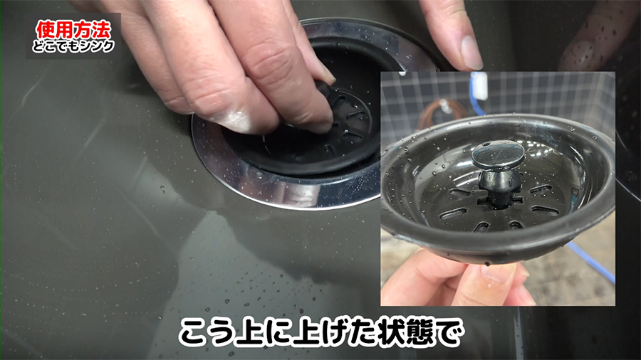 どこでもシンクは止水をしてシンクに水を溜める事ができます。