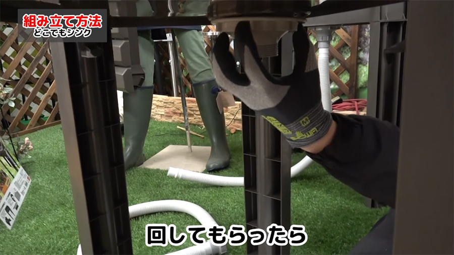 ③最後に排水ホースを取り付けます。こちらも工具不要で回すだけで取り付けができます。