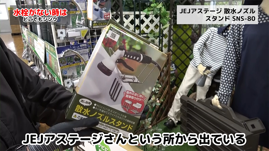 高さ70cm以上の水栓がない場合は散水ノズルがあれば代用できます。藤原産業の商品ではないですが、JEJアステージ 散水ノズルスタンド SNS-80を使う事で水栓の代わりになります。