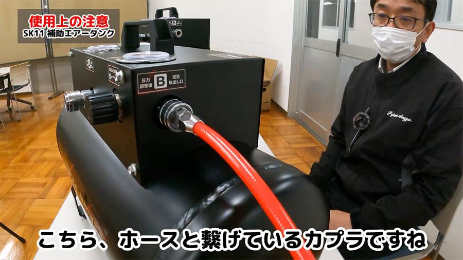 ・タンク内は空気が圧縮されていますので、くれぐれもエアホースの取り外しにはご注意ください。
