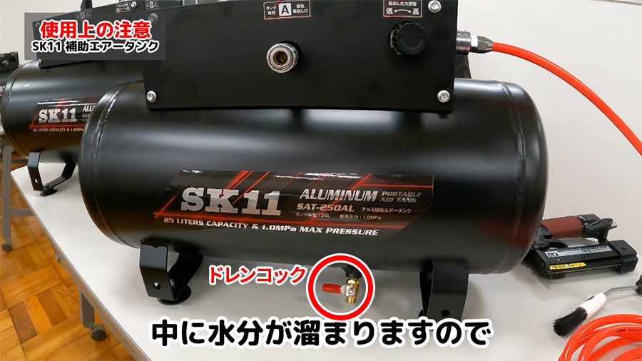 ・使い終わった後、そのままにしておくとタンク内に水が溜まりますので、必ずドレンコックから空気を全て抜くようにして下さい。