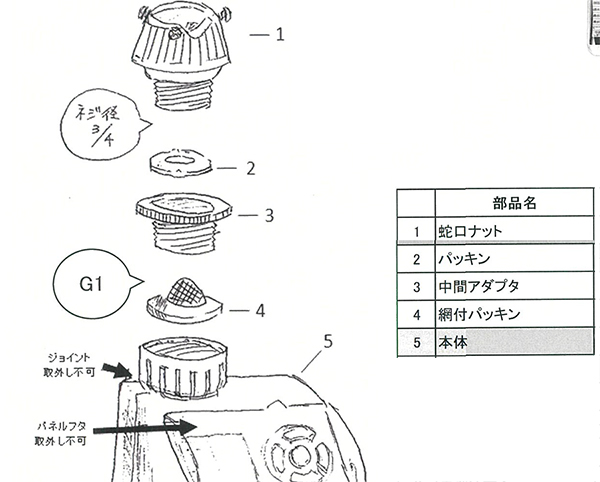 セフティー3 standard SST-3を3~4年ほど前に購入し気に入って使っていますが、冬場に使わなかったので、久しぶりに水を出したら、水漏れがあるのが分かりました。これのパッキンは、売ってないでしょうか?またおいくらでし?