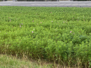 今年は雨の影響で例年よりも少し遅い播種となっています。見頃時期は例年通り10月下旬からとなっています。