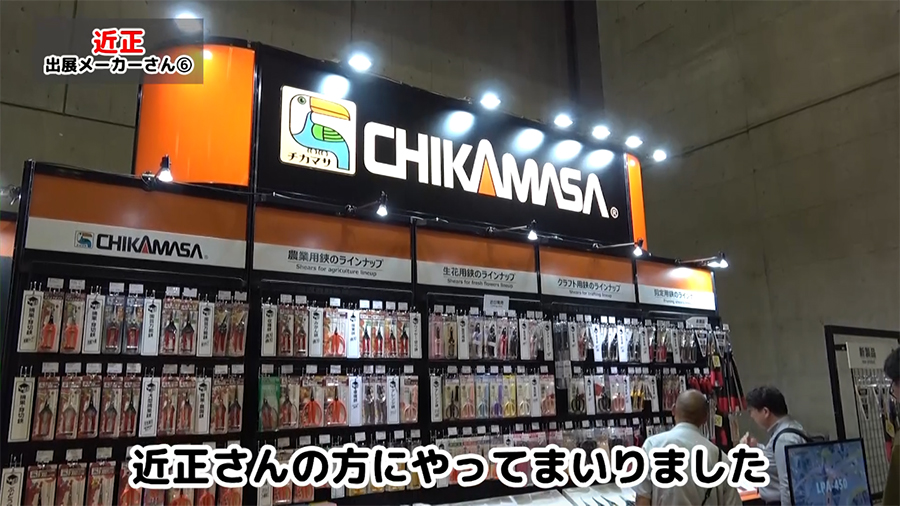 最後に近正さんのブースです。多種多様なハサミが壁面に展示されています。