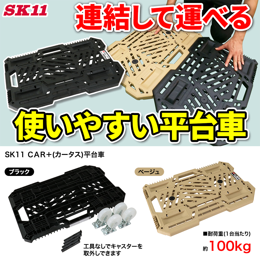 本日は耐荷重約100kgで縦横に連結ができる平台車をご紹介します。