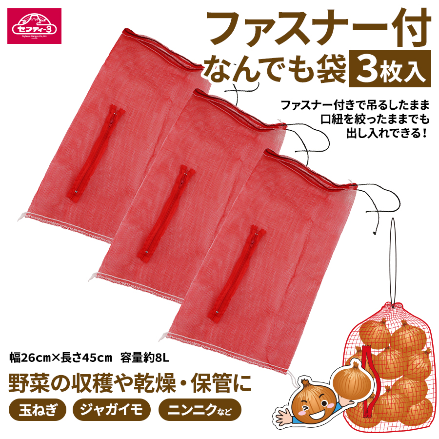 本日は野菜の収穫や乾燥・保管に便利なファスナー付きなんでも袋(3枚入)をご紹介します。