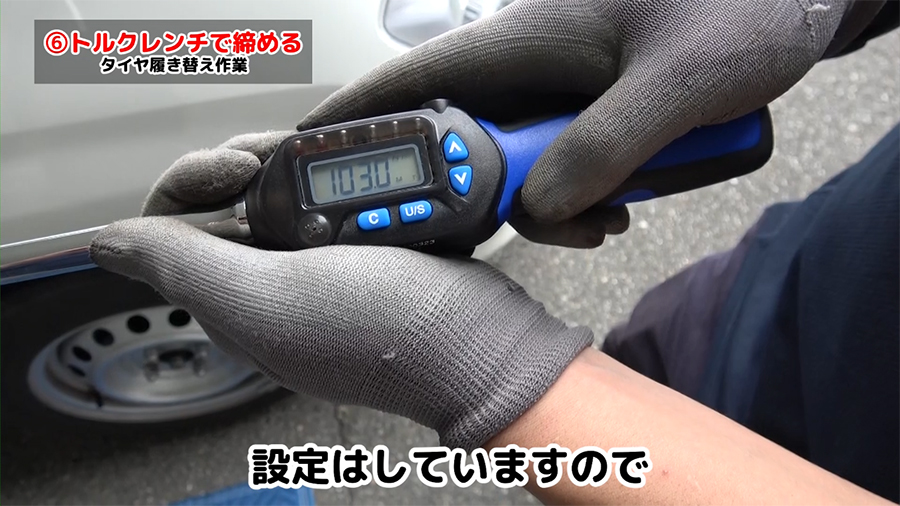 トルクレンチとはタイヤ履き替え作業で最後にタイヤを締め付けるのは何N・m(ニュートン)ですよといった規定トルクが車種ごとに決まっています。