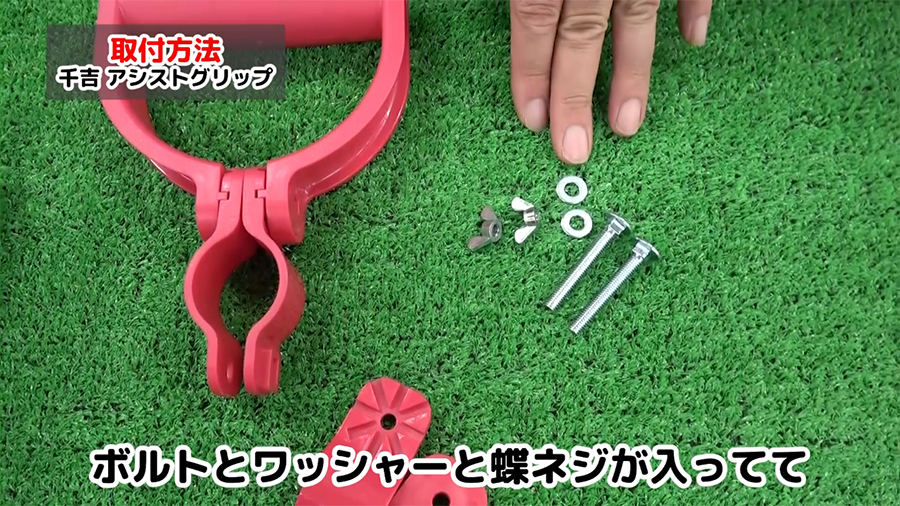 セット内容はハンドルと大径、小径用のクリップ、ボルト、ワッシャー、蝶ネジとなっています。