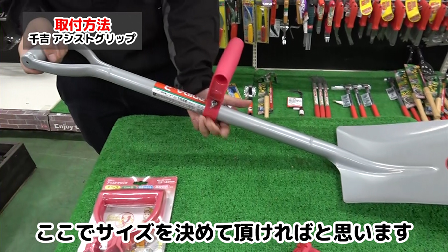 千吉 アシストグリップ SAG-1は柄に取り付けて、手・腕・腰・肩への負担を軽減する商品です。