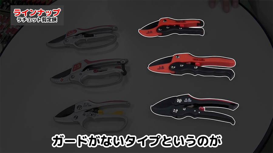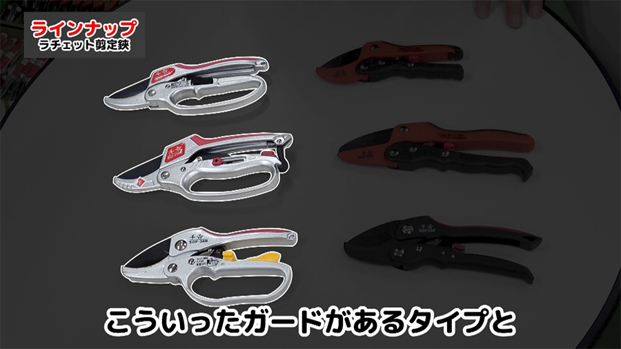 手のガードがあるタイプは3種類あります。手のちいさい人でも使えるSGP-34R、スタンダードなSGP-22R、ラチェットの有無を切替できるSGP-23RCがあります。