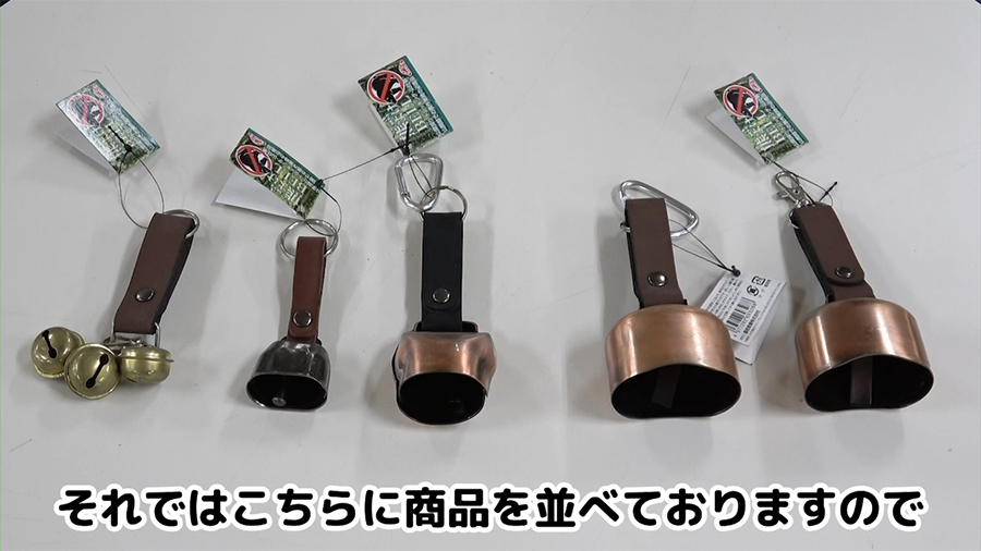 熊よけベルは全8種類あります。鈴タイプや鐘、鉄ベルタイプなど様々取り揃えております。