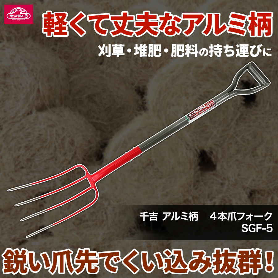 農業用フォークには木柄やステンレス製やグラスファイバー製などがありますが、アルミ柄は一番軽くなっています。