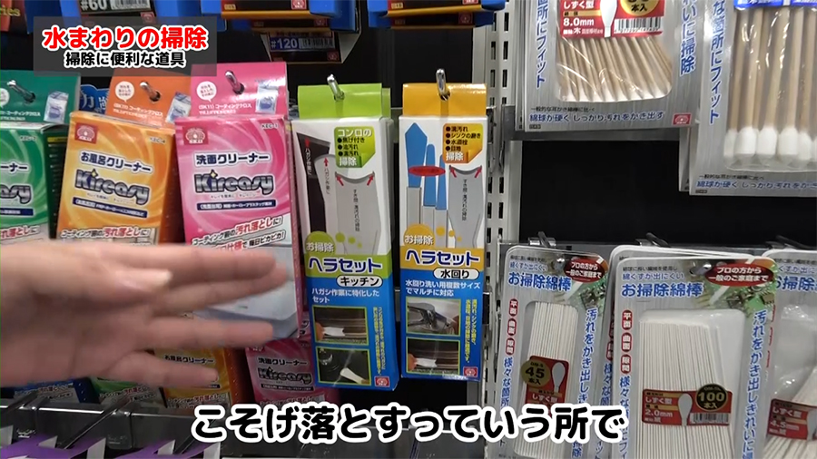 お掃除ヘラセットはキッチン用と水回り用があります。キッチン用はコンロの焦げ付きや油汚れを掃除するヘラ、水回り用は溝汚れやシンクの汚れなどを掃除できるヘラがセットになっています。