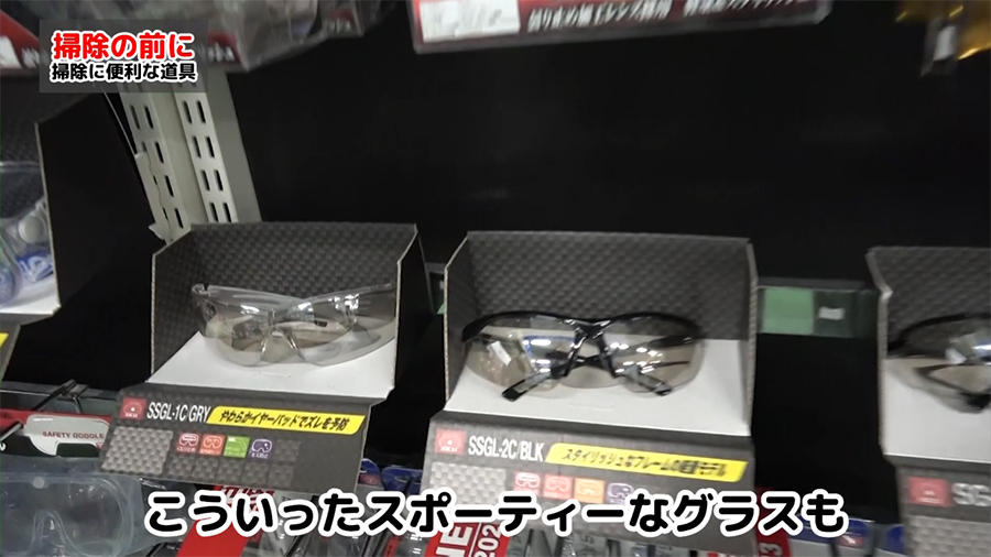 掃除する時に洗剤が目に入らないように保護メガネをするのもオススメです。最近ではオシャレなデザインの保護グラスも増えました。