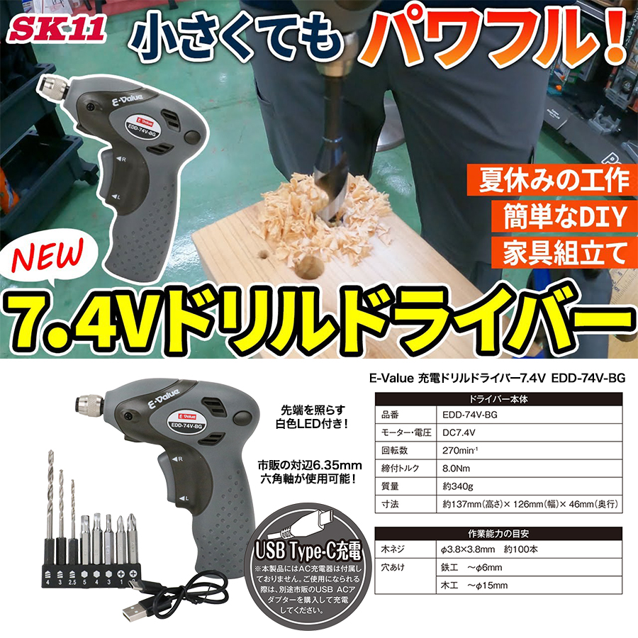 ガッツリDIYをする方には物足りないと思いますが、ネジ締めくらいだったら7.4Vで十分です。