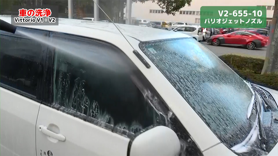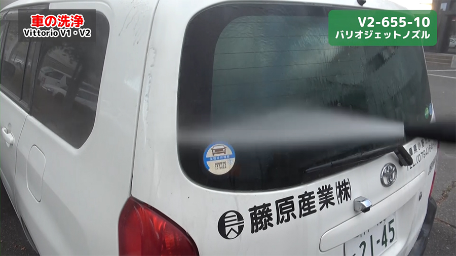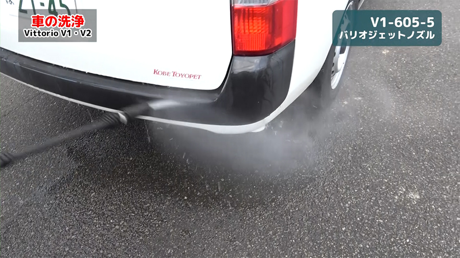 洗車ではバリオジェットノズルの拡散を主に使い、特に汚れている場所はピンポイントで直噴にして汚れを落としていきます。