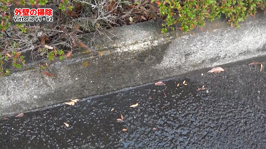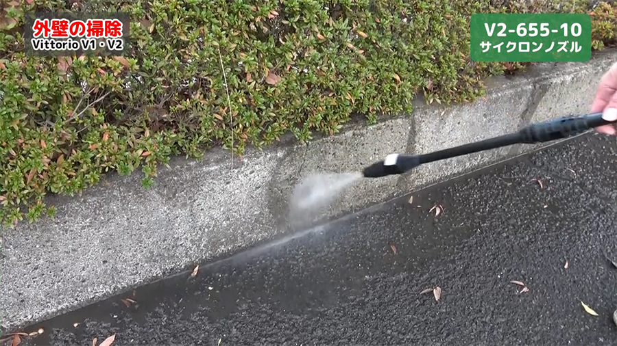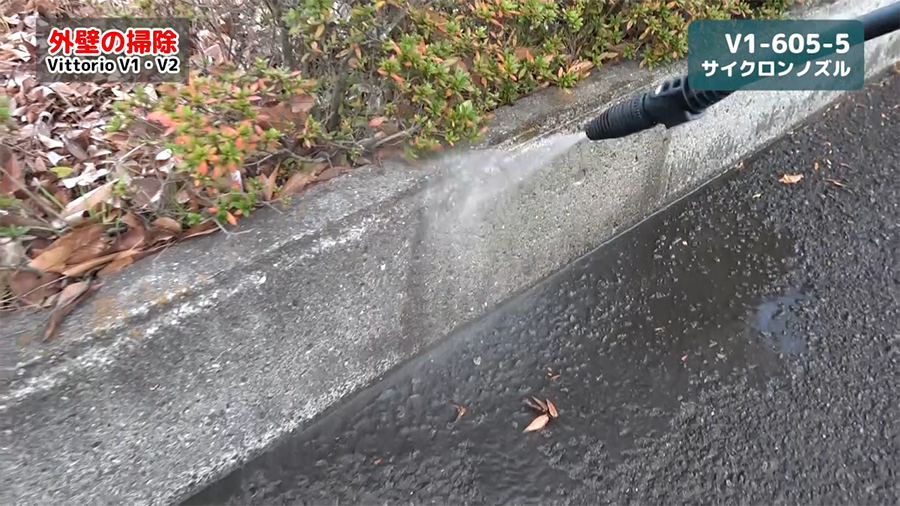 こちらはサイクロンノズルを使って清掃していきます。頑固な汚れや苔などには近づけたり直噴にすると落とすことができます。