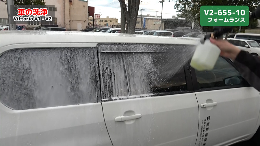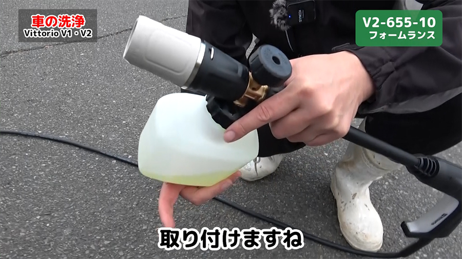 泡洗車といえば、別売となりますがアクセサリーでフォームランスがあります。こちらはきめ細かい泡が噴射できる優れモノで、V1-605-5とV2-655-10の両方とも対応しています。