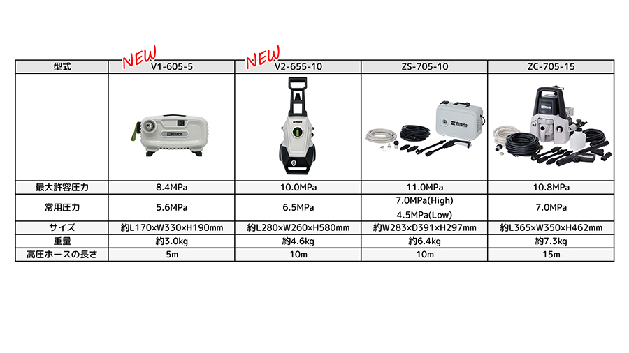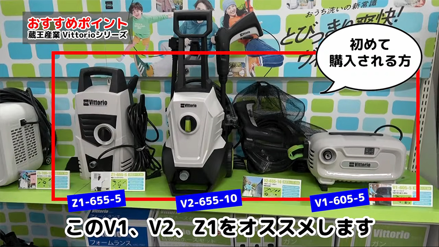 初めて高圧洗浄機をご購入される方にはZ1-655-5、V1-605-5、V2-655-10をオススメします。