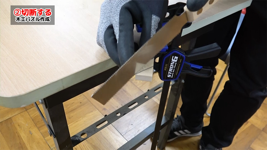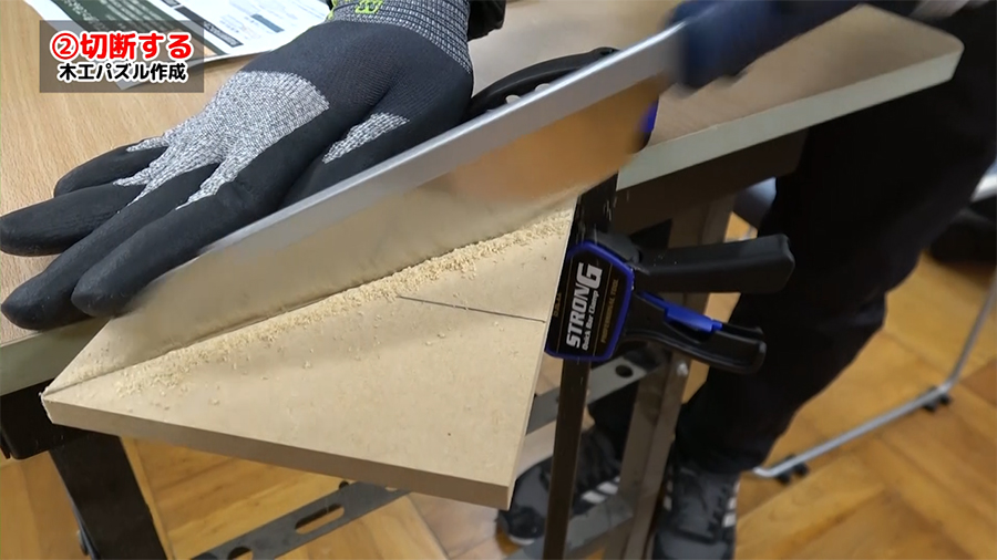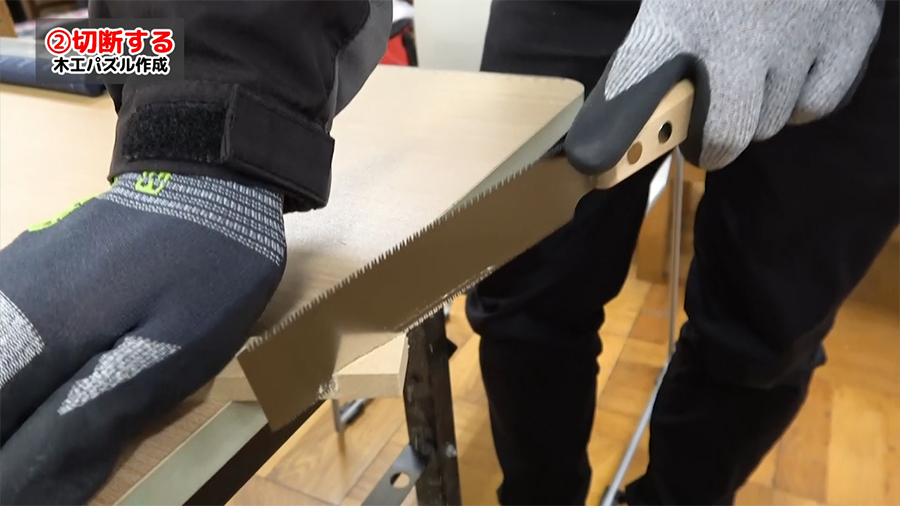 パズルのピース部分は刃長が長い薄刃鋸や両刃鋸で切っていきます。