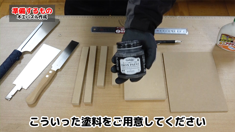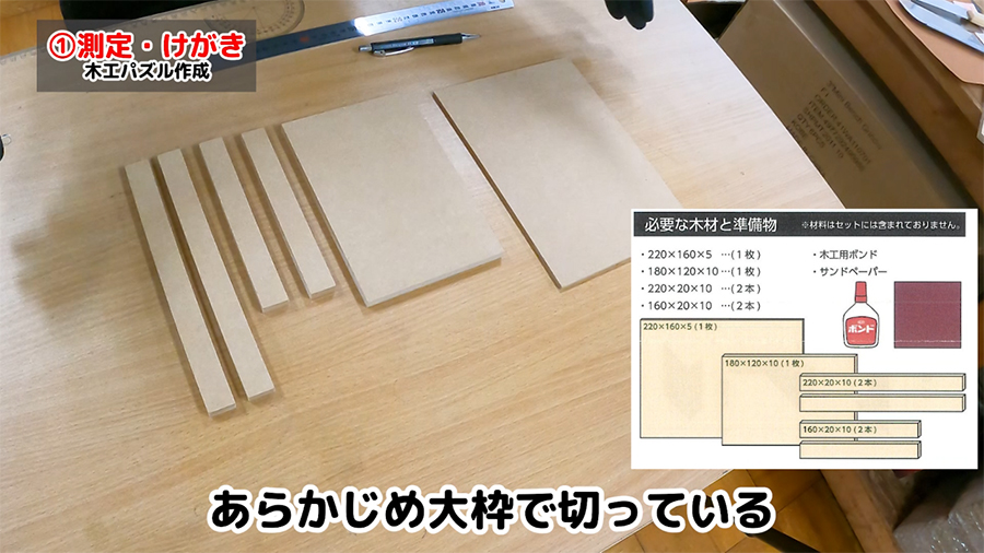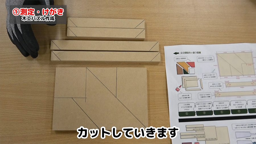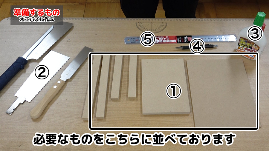 今回はのこぎりセットの中に入っている、木工パズルの作り方を見ながら実際に作っていきたいと思います。