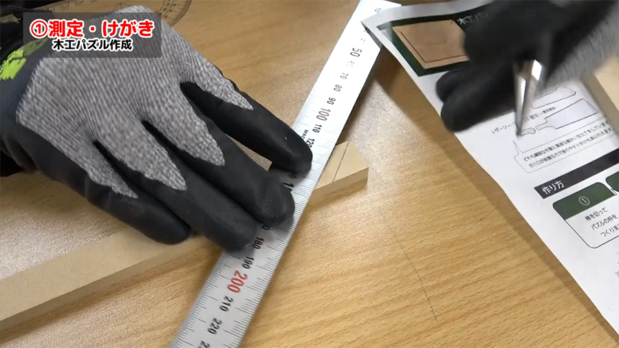 パズルのピース部分は少々複雑なのでけがき作業は慎重に行います。