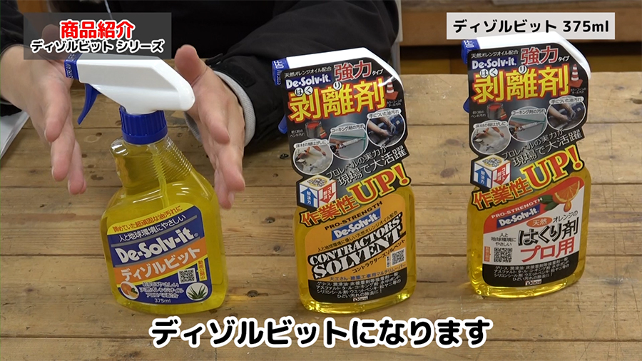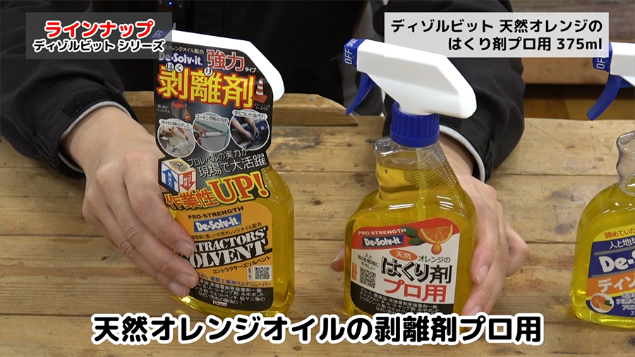 ディゾルビットの他にもプロ用のコントラクターズソルベントと天然オレンジのはくり剤 プロ用があります。
