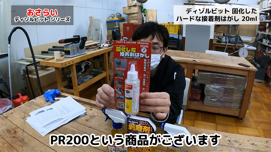 また、工業用テープ、粘着汚れをはがし落とし、頑固な機械油の汚れも簡単に落とせるようなドーイチさんの中で一番強力なPR200という商品があります。