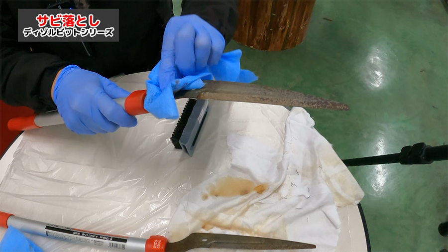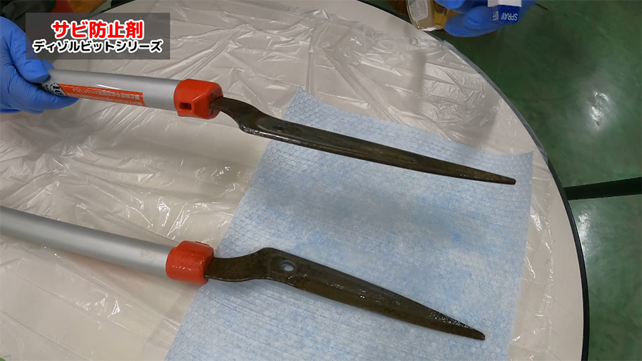 錆を落としたのは良いですが、また使っていくうちにサビてしまいますので防錆剤ラストプリベンションで仕上げ作業をします。