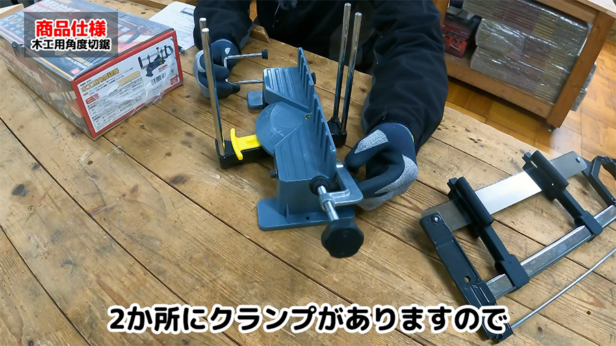 6つの角度以外にも任意の角度に合わせて切る事ができますが、固定ができないので市販のクランプなどで固定する必要があります。
