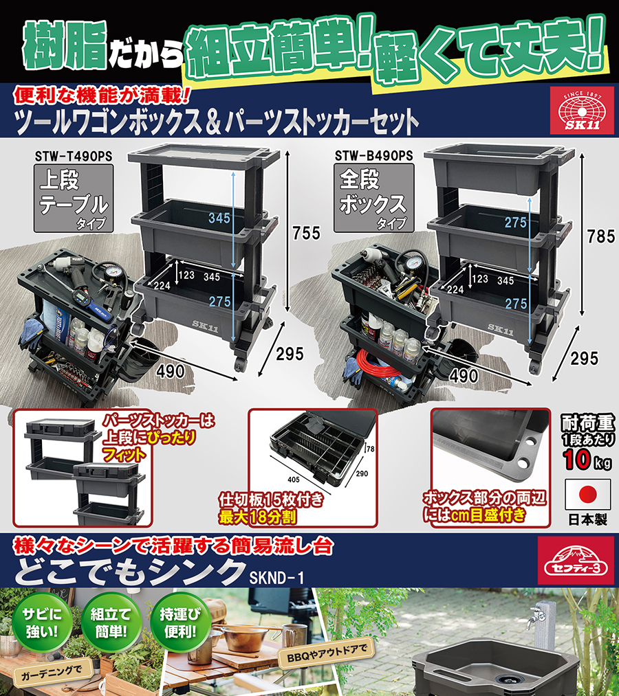 どこでもシンクはガーデニングやBBQやアウトドアでも活躍する簡易流し台です。樹脂製なのでサビることなく組立て・持ち運びが簡単です。