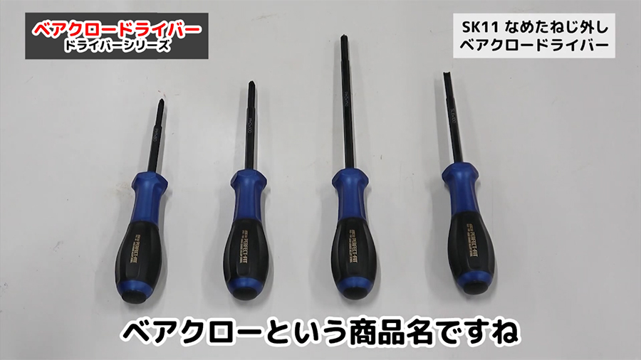 なめかけたネジ、通常のネジの両方を回せるのがSK11 なめたねじ外しベアクロードライバーです。