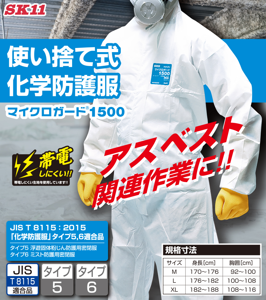 本日はアスベスト取扱いや粉体取り扱いなどの作業に使える使い捨ての化学防護服をご紹介します。
