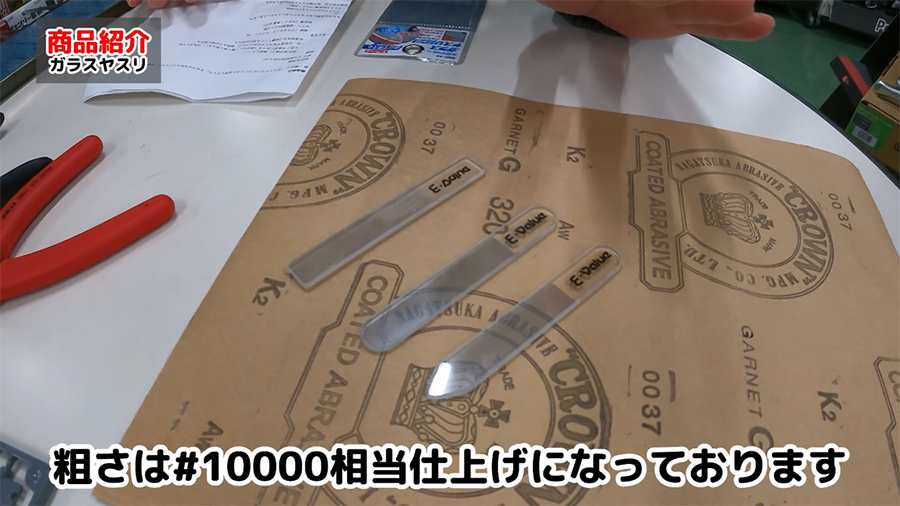 ガラスヤスリの粗さは#10000相当仕上げとなっています。ヤスリは片面のみとなっています。