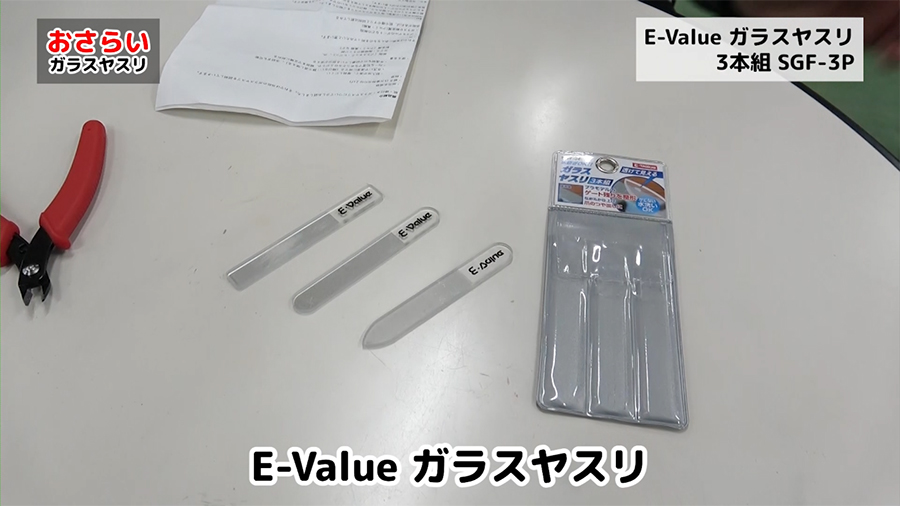 今回紹介するガラスヤスリはプラモデルのゲート残りを整形したり、爪のツヤ出しなどに使われています。