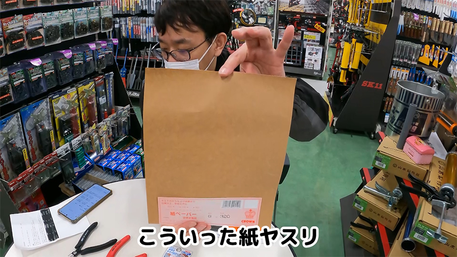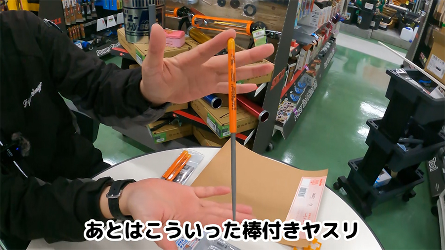 ヤスリの種類は木工DIYではお馴染みの紙ヤスリ、金属や粗目の加工に使われる棒ヤスリがあります。