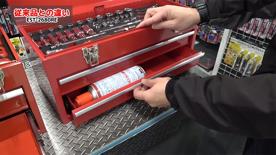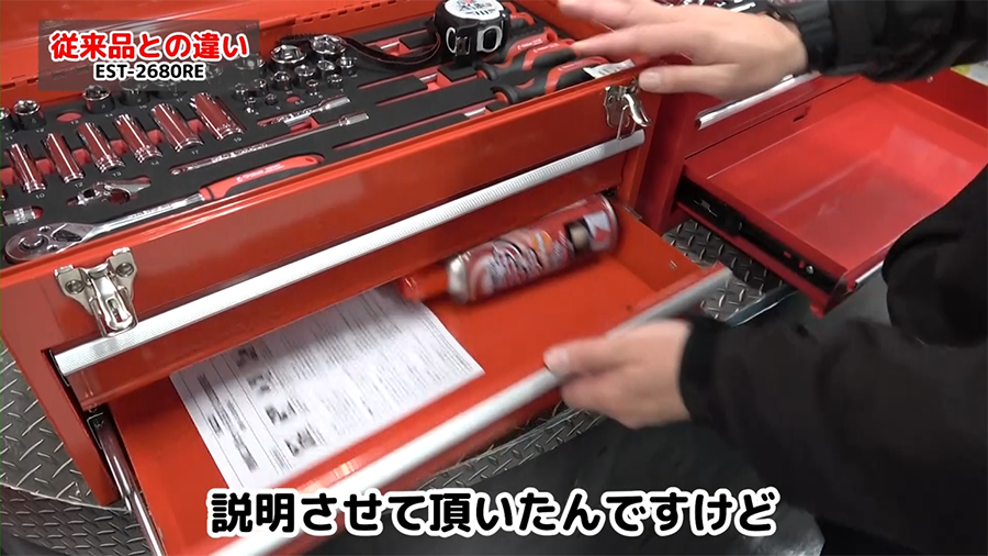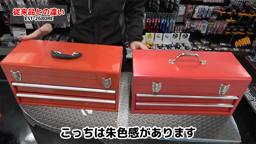 従来品とはツールチェストの大きさは変わりません。少し今回のリニューアル品の方が艶消し感があります。
