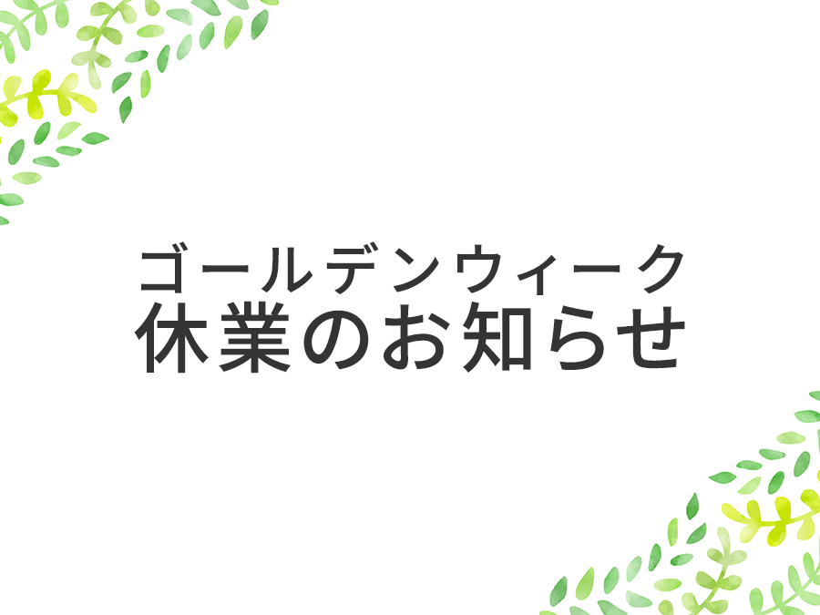 4月も中旬ですね。本日はゴールデンウィーク休業についてお知らせします。