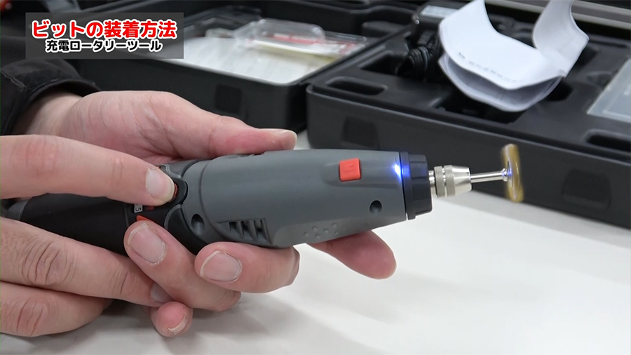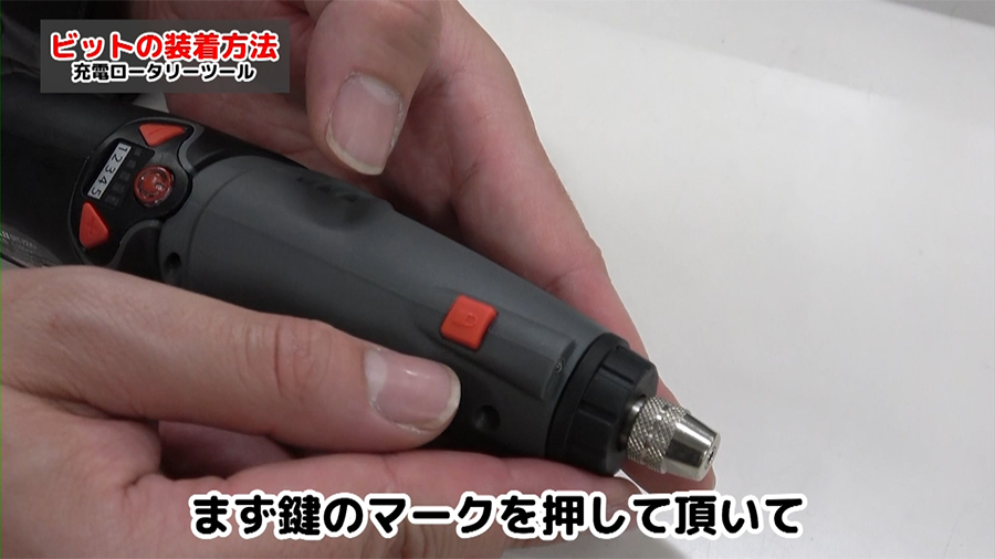 チャックを締めていくと空回りします。鍵マークのボタンを押しながらビットを回すとボタンが凹みます。その後しっかり締めると完成です。