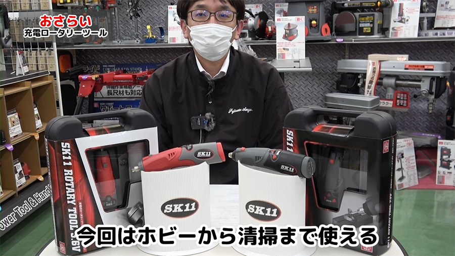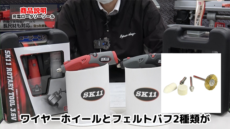 SK11 充電ロータリーツールは3.6Vタイプと7.2Vタイプがあります。リチウムイオン蓄電池内蔵で継ぎ足し充電も可能です。