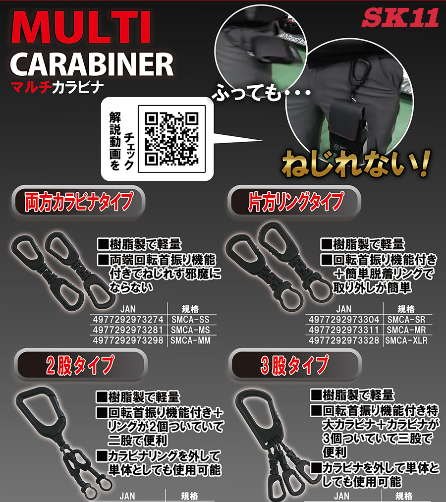 藤原産業の広告ページでは、樹脂製のマルチカラビナを掲載していただいています。