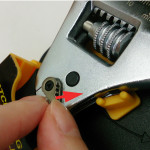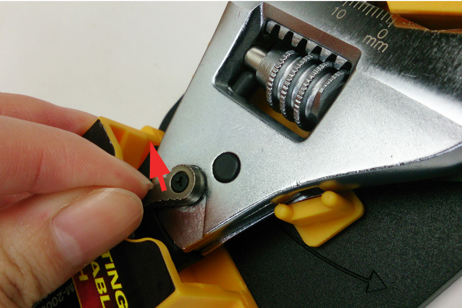 ②包丁の砥ぐ部分に合わせて、砥げるよクリップの位置を移動させます。